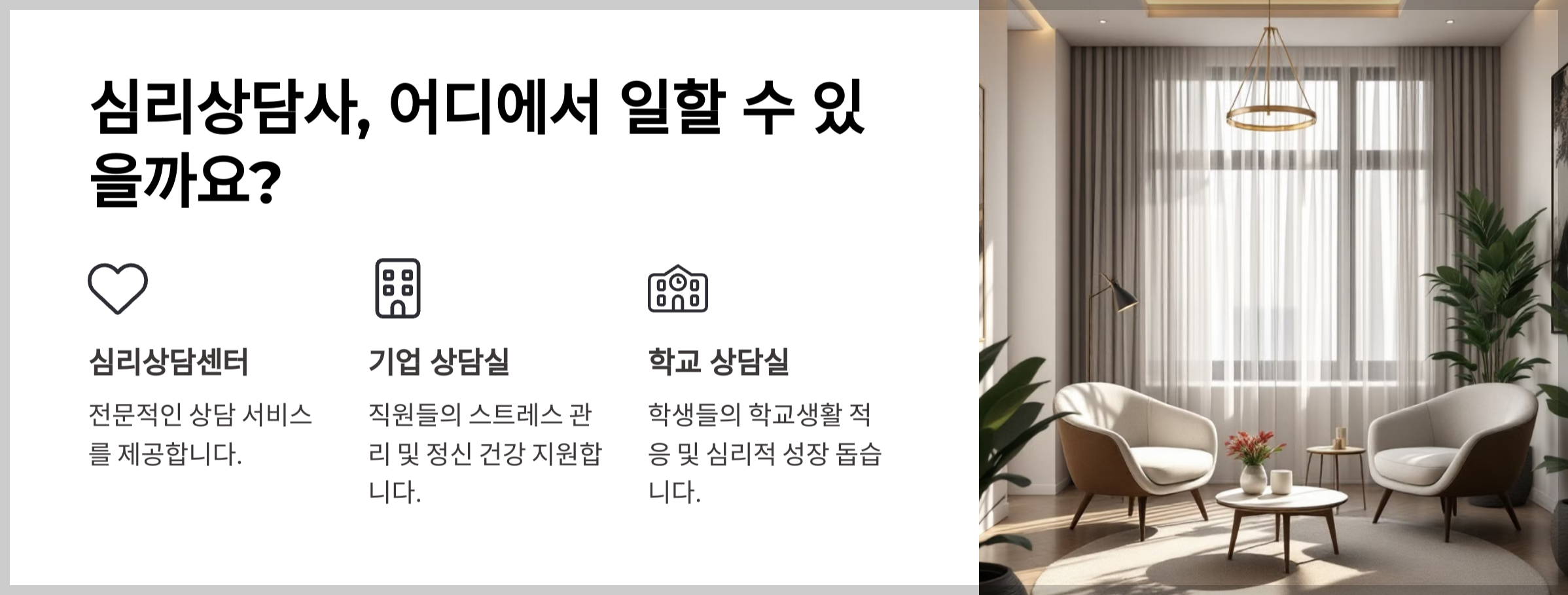 - 기업들도 직원 멘탈케어에 투자하기 시작하면서, 사내 심리상담사 수요도 늘어나고 있습니다.